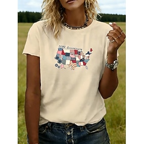100% Cotone Bambini Ragazze Nero Bianco Grafico Bandiera USA 250° anniversario Bandiera americana per bambini Maglietta Girocollo Manica Corta Vacanza Sport & Outdoor Abbigliamento Quotidiano Attivo