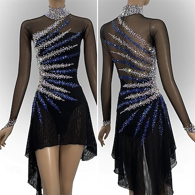 Abito da pattinaggio artistico Per donna Ragazze Pattinaggio sul ghiaccio Vestito Nero / blu Patchwork Foro per il pollice Rete Spandex Alta elasticità Allenamento Competizione Vestiti da pattinaggio