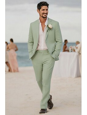 Uomo Completi in Lino Matrimonio in Spiaggia Bianco Verde salvia Primavera & Estate Tuta Bavero classico Formale Tinta unita Vestibilità su misura 2 pezzi Monopetto Due Bottoni
