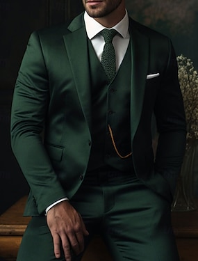 Uomo Smoking Abiti da festa Matrimonio in Spiaggia Matrimonio primaverile Verde militare Primavera & Estate Tuta Bavero classico Casual Formale Tinta unita Vestibilità aderente 3 pezzi Monopetto Due