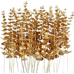 24 steli di eucalipto artificiali dorati da 15'', foglie di eucalipto finte, rami di verde finto per decorazioni natalizie, centrotavola per bouquet da sposa, composizione floreale, decorazione per la