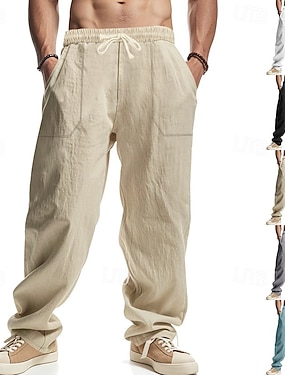 Per uomo Pantaloni di lino Jogger cargo Pantaloni Pantaloni estivi Pantaloni da spiaggia A cordoncino Vita elastica Multi tasca Liscio Comfort Traspirante Informale Giornaliero Per eventi Di tendenza