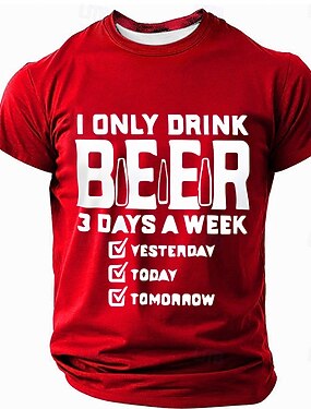 Maglietta grafica a maniche corte da uomo Divertente 'Bevo birra solo 3 giorni a settimana' umorismo per amanti della birra
