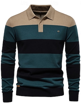 Per uomo Maglione Maglia Top Regolari Jacquard Bottoni Tinta unica Colletto Polo Elegante Vintage Scuola Casa Abbigliamento Primavera Autunno Blu marino scuro Cachi S M L