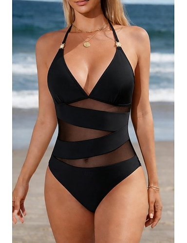 Per donna Costumi da bagno Intero Monokini Costume da bagno Rete Controllo della Pancia Vita alta Snello Senza schiena Vacanza Abbigliamento da Spiaggia Tinta unica Scollo a V Senza Maniche Costumi