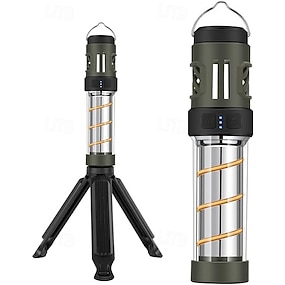 Torcia a LED ricaricabile, lanterna da campeggio con doppia funzione di riscaldamento, repellente, portatile, design magnetico, supporto per treppiede, luce repellente per ronzii per campeggio in
