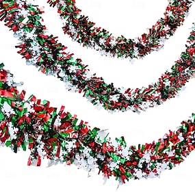 Set di 3 ghirlande natalizie metalliche – 6 metri in totale, ghirlanda di filo intrecciato verde e rosso con fiocchi di neve, perfetta per la mensola del camino di casa, l'albero, la ringhiera delle