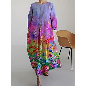 Per donna Abito maxi Abito Estivo Vacanza Casual cocktail Ospite di nozze Compleanno Quotidiano Vestibilità regolare Ombre Floreale Manica 3/4 Girocollo Rosa Estate Primavera