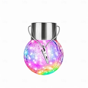 1 confezione di luci solari da esterno da appendere, luci solari in vetro craquelé impermeabili a LED decorative a sfera, luci a globo a energia solare per albero con gancio per giardino, cortile,