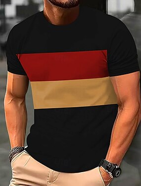 Per uomo Maglietta Camicia a Maniche Corte Manica Corta Girocollo Estate Blocco di colori Moda Designer Essenziale Patchwork Vacanza Streetwear Uscire Giallo Rosso Arancione Maglietta Top per Uomo