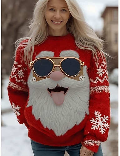 Maglione da donna Natale Babbo Natale Moda Casual Graphic Claus Collo Rotondo Maglia Maniche Lunghe Top Regolari Maglia Lavoro Feste Rosa Autunno Inverno