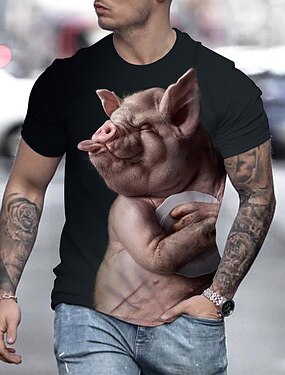 Per uomo Grafico Animale 3D Maiale Maglietta Magliette Divertenti Manica Corta maglietta Stampa 3D Girocollo Camicia Streetwear Esagerato Cool Quotidiano Vacanza Ferie Arcobaleno Abbigliamento Taglie