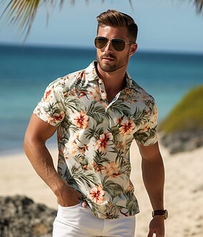 Derby del Kentucky Per uomo Floreale Polo Hawaiane Maglia da golf Manica Corta Magliette polo Scollo a V Casual Abbigliamento mare Abbigliamento da vacanza Abbigliamento tropicale Abiti da festa
