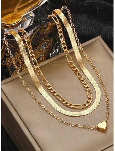Set di collana da donna con ciondolo a cuore a strati in lega, collana girocollo a catena multipla oro e argento per vacanze al mare, abbigliamento casual quotidiano, viaggi e stile minimalista.