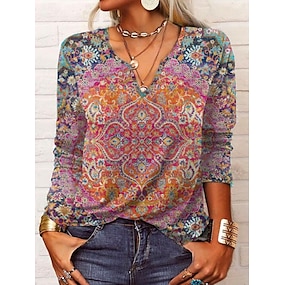 Per donna Maglietta Floreale Grafico Paisley Vintage Elegante Classico Manica Lunga Scollo a V Top Regolari Quotidiano Stampato Rosa Blu Viola Arancione Primavera Autunno Inverno