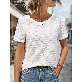 Per donna Top a maglia con texture Maglietta Grafico Semplice Elegante Classico Manica Corta Girocollo Top Regolari Quotidiano Palestra Sportivo Bianco Estate Primavera