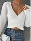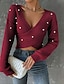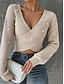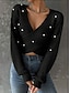Per donna Felpa Elegante Moda Sexy Colore Puro A Coste Scollo a V Con perline Incrociato Lavorato a maglia Manica Lunga Top Regolari Maglia All'aperto Quotidiano Weekend Nero Bianco Primavera Autunno