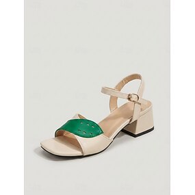 beige da donna &Sandali eleganti con dettagli a foglia verde – scarpe comode con tacco a blocco per tutti i giorni &abbigliamento da vacanza