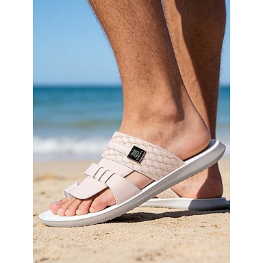 sandali bianchi da uomo in similpelle con cinturini eleganti, perfetti per rilassarsi in spiaggia o a bordo piscina