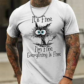 Per uomo Gatto Divertente Maglietta Manica Corta maglietta Stampa 3D Girocollo Camicia Retrò Vintage Casual Streetwear Casuale Bar Blu chiaro Bianco Cachi Primavera & Estate Abbigliamento S M L XL