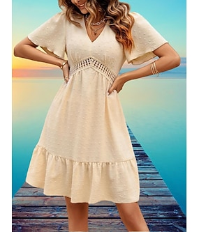 Per donna Abito al ginocchio Abito da Spiaggia Abito in Pizzo Vestito Casual Elegante Moda Moderno All'aperto Spiaggia Vacanza Vestibilità regolare Semplice Manica Corta Scollo a V Marrone rossastro