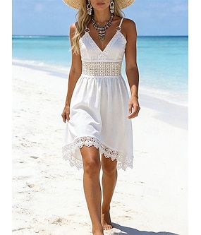 Per donna Abito Lungo Maxi Abito Abito in Pizzo Abito Sottoveste Mini abito Moda Classico Moderno Quotidiano Vacanza Uscire Vestibilità regolare Semplice Senza Maniche Scollo a V Bianco Estate