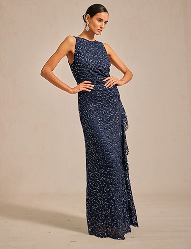 Per donna Abito maxi Tubino Elegante Festa serale Ospite di nozze Paillettes Pizzo Volant Vestibilità regolare Tinta unica Senza Maniche Scollo a Barca Rosa cipria
