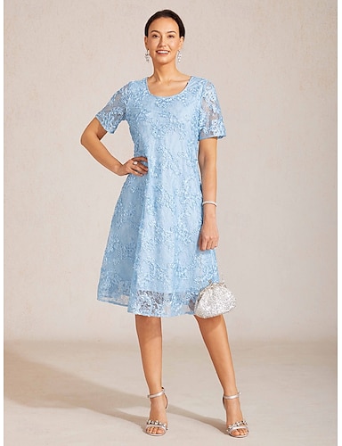 Per donna Abito Midi Abito a Tubino Elegante Ospite di nozze Ferie Data Pizzo Ricamato Tinta unica Manica Corta Girocollo Azzurro cielo