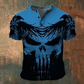 Per uomo maglietta Camicia Henley Pop art Teschi Aquila Henley Nero / Bianco Nero / Grigio Nero Blu Marrone Strada Informale Manica corta Bottone giù Stampa Abbigliamento Moda Vintage Essenziale