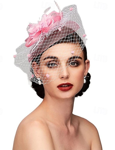 Fascinatori cappello con velo a rete gara di cavalli giorno delle donne matrimonio con copricapo a petalo