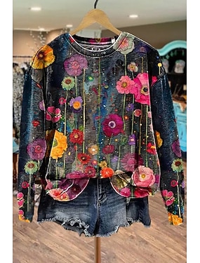 Per donna Felpa Pullover Stampato Floreale Grafico Caldo Attivo Vintage Manica Lunga Girocollo Top Regolari Casuale Streetwear Abbigliamento Quotidiano Blu Nero Rosa Verde Primavera Autunno Inverno