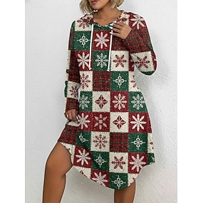Per donna Mini Abito Abito con Cappuccio Vestito Casual Elegante Moda Moderno Natale All'aperto Quotidiano Vestibilità regolare Plaid Manica Lunga Con Cappuccio Vino Primavera Autunno Inverno