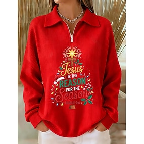 Per donna Felpa Pullover Grafico Albero di Natale Casual Manica Lunga Mezza zip Top Regolari Abbigliamento Quotidiano Casuale Sportivo Blu Nero Rosa Rosso Verde Autunno Inverno