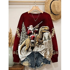 Maglione da donna di Natale Babbo Natale Albero di Natale Felpa Stampa grafica Claus Casual Maniche lunghe Collo rotondo Top regolari Abbigliamento da strada Quotidiano Casual Rosso Arancione Beige