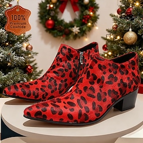 stivaletti da uomo in pelle con stampa leopardata rossa: calzature natalizie accattivanti per le riunioni di festa e le occasioni festive informali