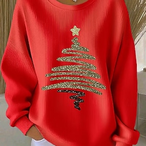 Maglietta Natalizia da Donna Grafica Lettera Moda Vintage Elegante Maniche Lunghe Girocollo T-Shirt Regolari Stampa Nera Gialla Rossa Verde Grigia Primavera Autunno Inverno