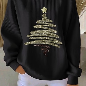 Natale Donne T-shirt Grafica Moda Vintage Stile Maniche Lunghe Collo a Giro Regular Tops Quotidiana Weekend Stampa Nera Oro Estate Primavera Autunno Inverno