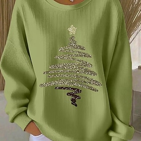 Natale Donne T Shirt Claus Vintage Stiloso Classico Maniche Lunghe Collo Rotondo Regular Top Weekend Stampa Verde Salvia Verde Militare Blu Reale Blu Oro Inverno