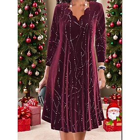 Abito Mini Donna A Line Abito Elegante Festa Compleanno Matrimonio Festa Colore Solido Manica Lunga Collo a V Rosso Primavera Autunno Inverno