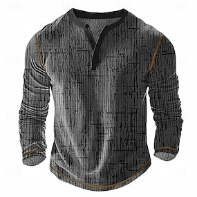 Per uomo Geometrico Astratto Maglia Henley Maglietta a nido d'ape Manica Lunga Vintage Quotidiano Retrò Vintage Sport all'Aperto Casuale Ferie Primavera & Estate Tutte le stagioni Grigio Blu Verde