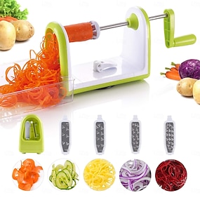 Affettatrice a spirale per verdure, affettatrice a spirale in acciaio inox a forma di V a 5 lame, affettatrice per spaghetti di pasta vegetariana e macchina per tagliatelle di zucchine