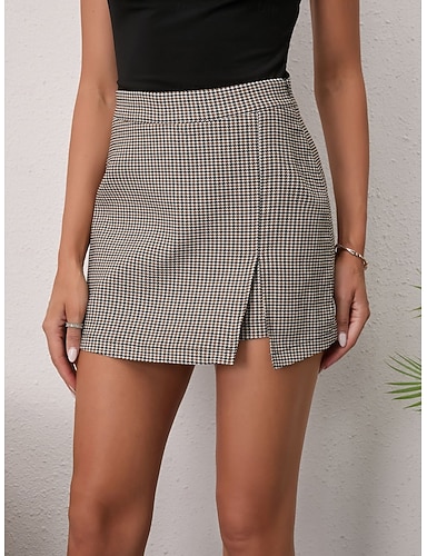 Per donna Gonna da vacanza Moda Casual Mini Vita Alta Gonne Pied-de-poule Stampato Micro-elastico Quotidiano Streetwear Nero Marrone Estate Poliestere