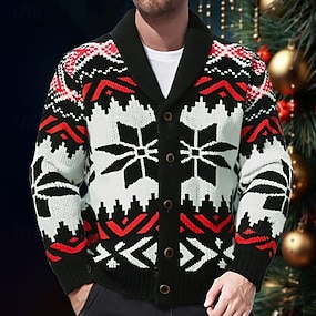 Per uomo Maglione jacquard Cardigan Maglione Maglione corto Maglione lavorato a maglia A coste Uncinetto Maglia Standard Lavorato a maglia Jacquard Fiocco di neve Risvolto sciallato Di tendenza