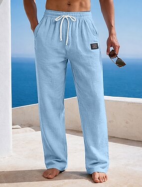Per uomo Pantaloni di Lino Pantaloni Pantaloni Estivi Pantaloni Larghi Pantaloni da Spiaggia Coulisse Elastico in vita Gamba Dritta Semplice Confortevole Traspirante Lunghezza intera Quotidiano