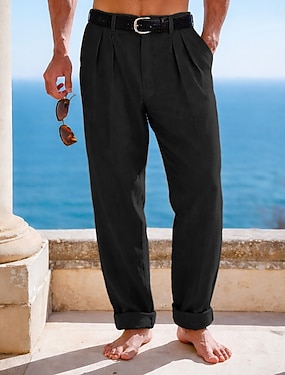 Per uomo Pantaloni di Lino Chinos Pantaloni Estivi Gamba Dritta Semplice Comodità Traspirante Lunghezza intera Casuale Quotidiano All'aperto Vacanza Moda Nero Bianco Inelastico