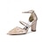 décolleté da donna con tacco a blocco e cinturino alla caviglia in metallo dorato, eleganti scarpe eleganti a punta per gli invitati ai matrimoni in città moderne
