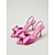 Sandali da donna rosa con tacco alto e punta aperta, decorati con fiocco, eleganti scarpe da invitata per matrimoni in giardino. &eventi all'aperto