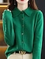 Per donna Felpa Cardigan Moda Streetwear Casual Tinta unica Colletto Polo Bottoni Lavorato a maglia Manica Lunga Top Regolari Maglia Quotidiano Ferie Uscire Nero Rosso Primavera Autunno