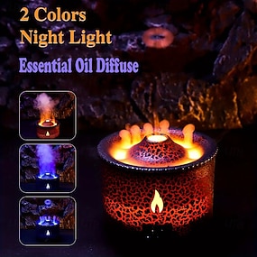 Diffusore di aromi a fiamma vulcanica con luce notturna a LED - umidificatore portatile per oli essenziali con spegnimento automatico e 2 modalità colore, ideale per la casa & ufficio