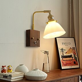 lightinthebox ivintage applique da parete lampada da parete in legno paralume in vetro e27 lampade da comodino camera da letto supporto regolabile in ottone luci da parete per soggiorno interno